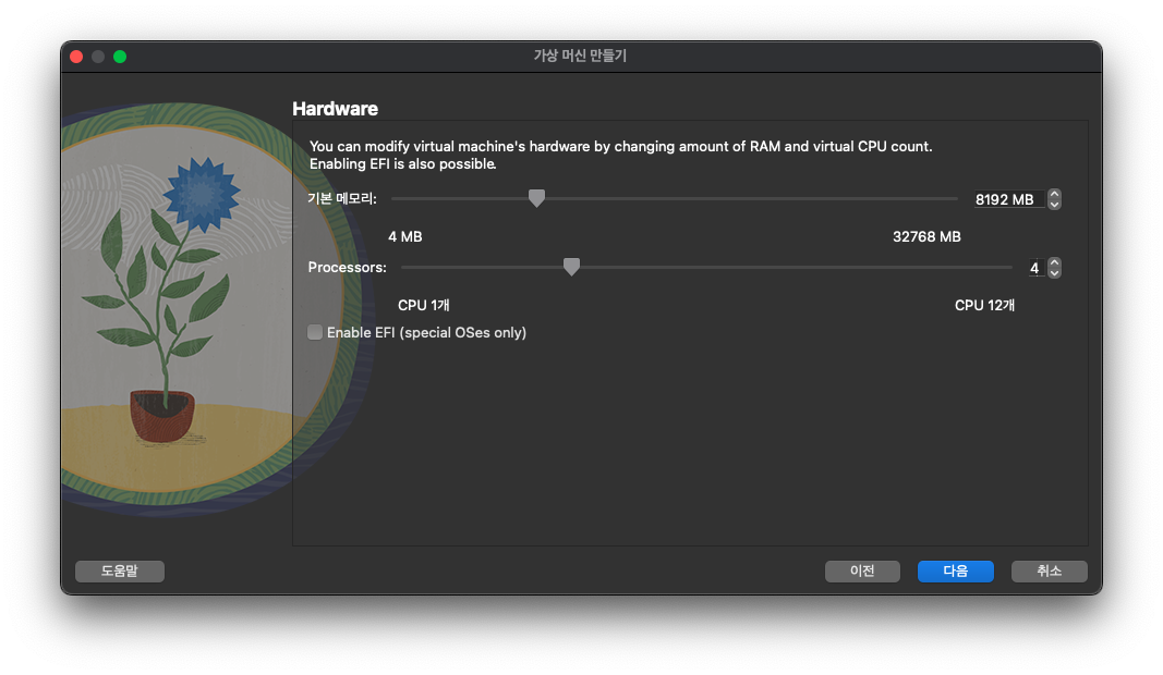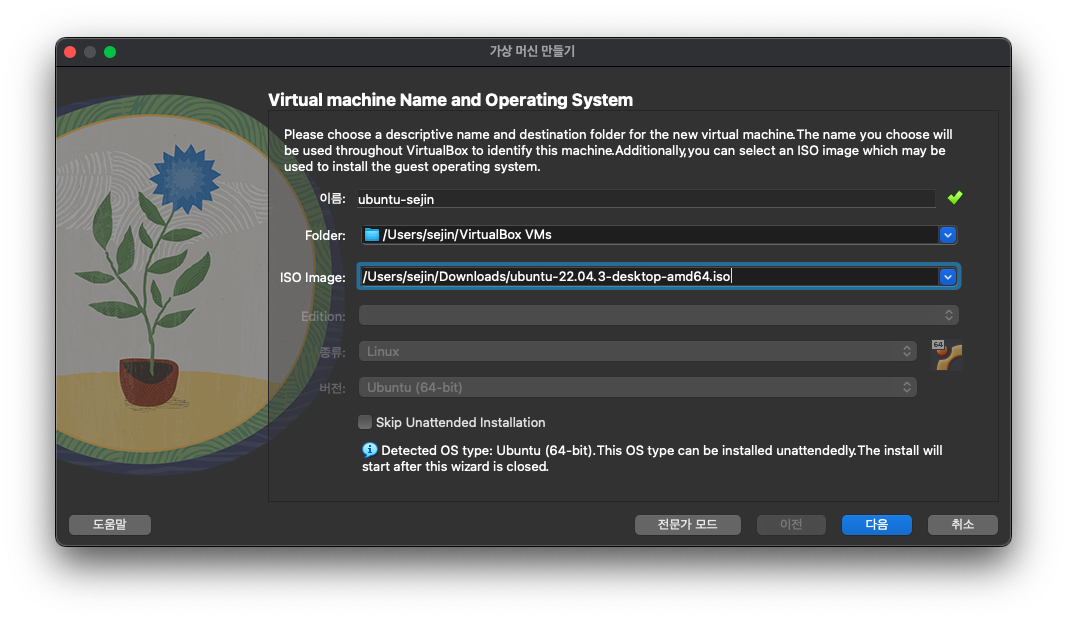이름 설정 - 다운받은 ISO 이미지 파일 선택
